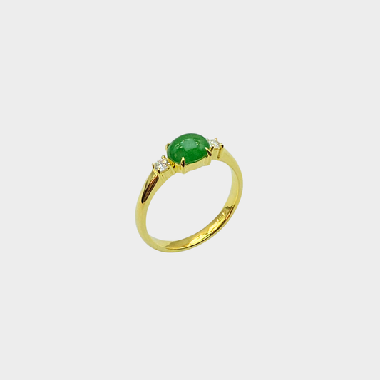 Apple Green Jadeite Jade Cabochon Ring in Yellow Gold with Diamonds