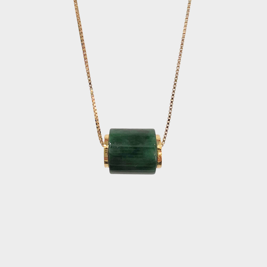 Flower Green Jadeite Jade "Barrel" Pendant in Yellow Gold
