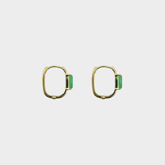 Jadeite Jade Hoop Earrings in Yellow Gold with Diamonds