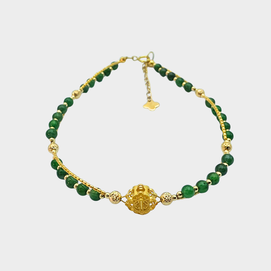 [Luminous Green Dewdrops] Jadeite Jade Beads Bracelet in Yellow Gold