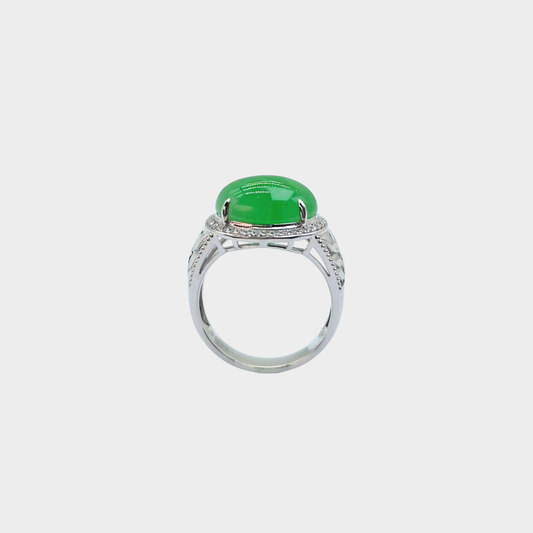 Jadeite Jade Cabochon Ring in White Gold with Diamonds