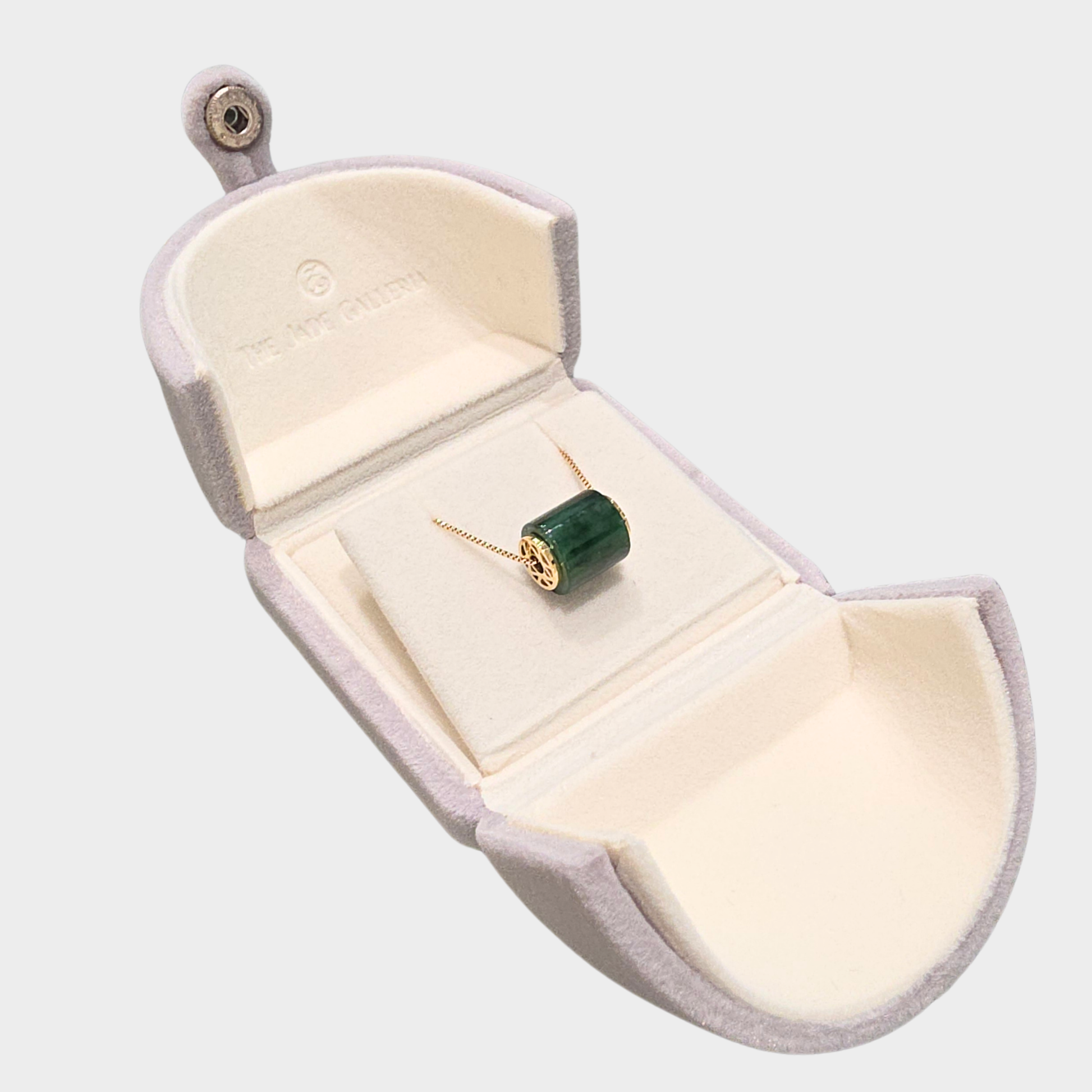 Flower Green Jadeite Jade "Barrel" Pendant in Yellow Gold
