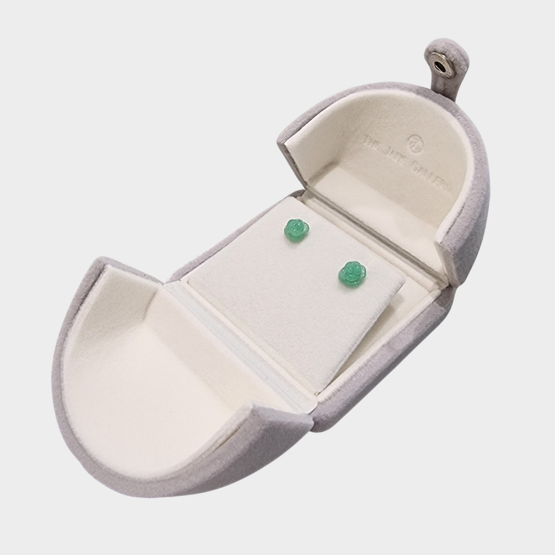 A pair of vibrant green Jade earrings set in yellow gold. These earrings feature intricate floral designs that symbolize elegance and beauty. -Blooming Flowers!