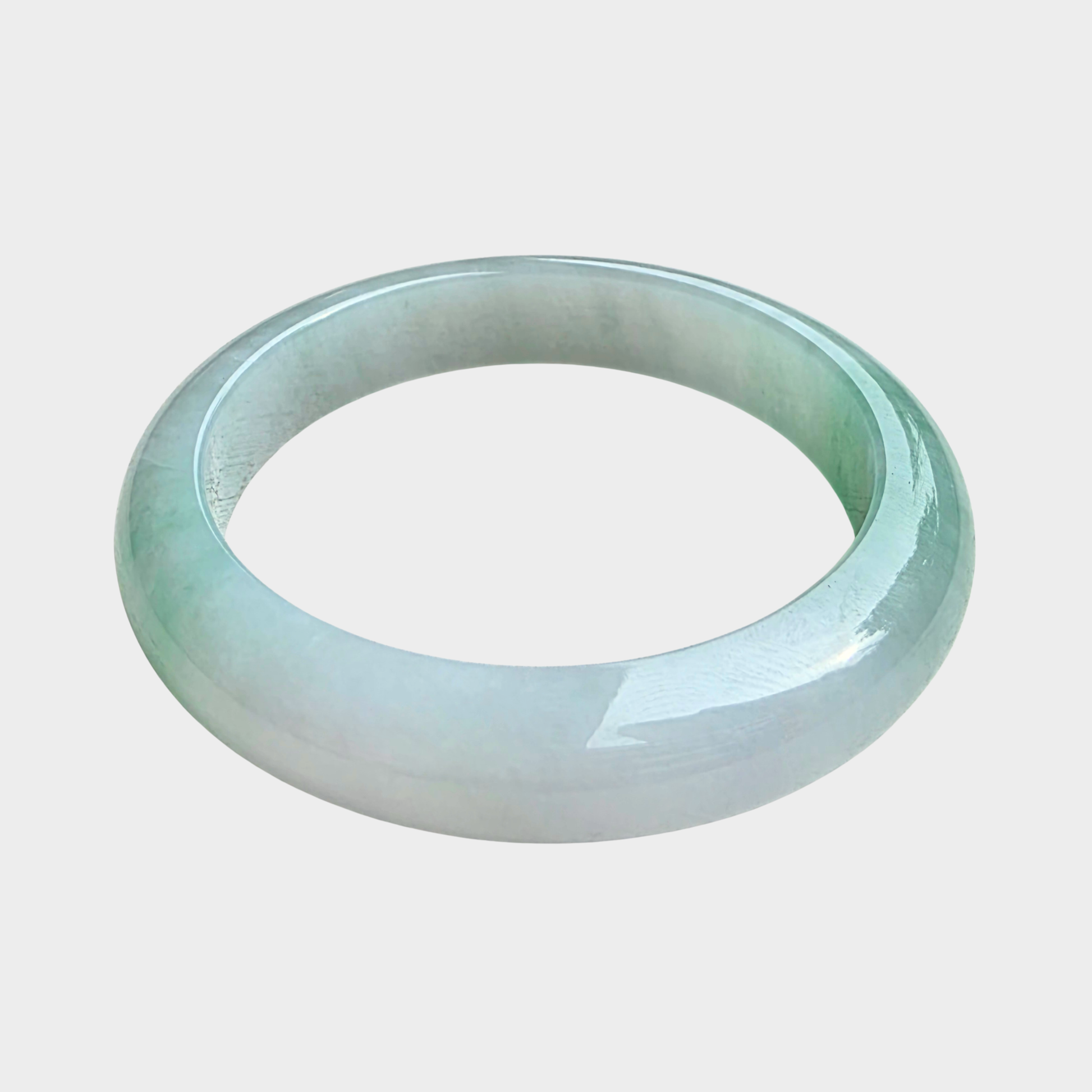 A highly translucent jade bangle with smooth green hues, offering a calm and serene appearance. -Experience a refreshing touch.