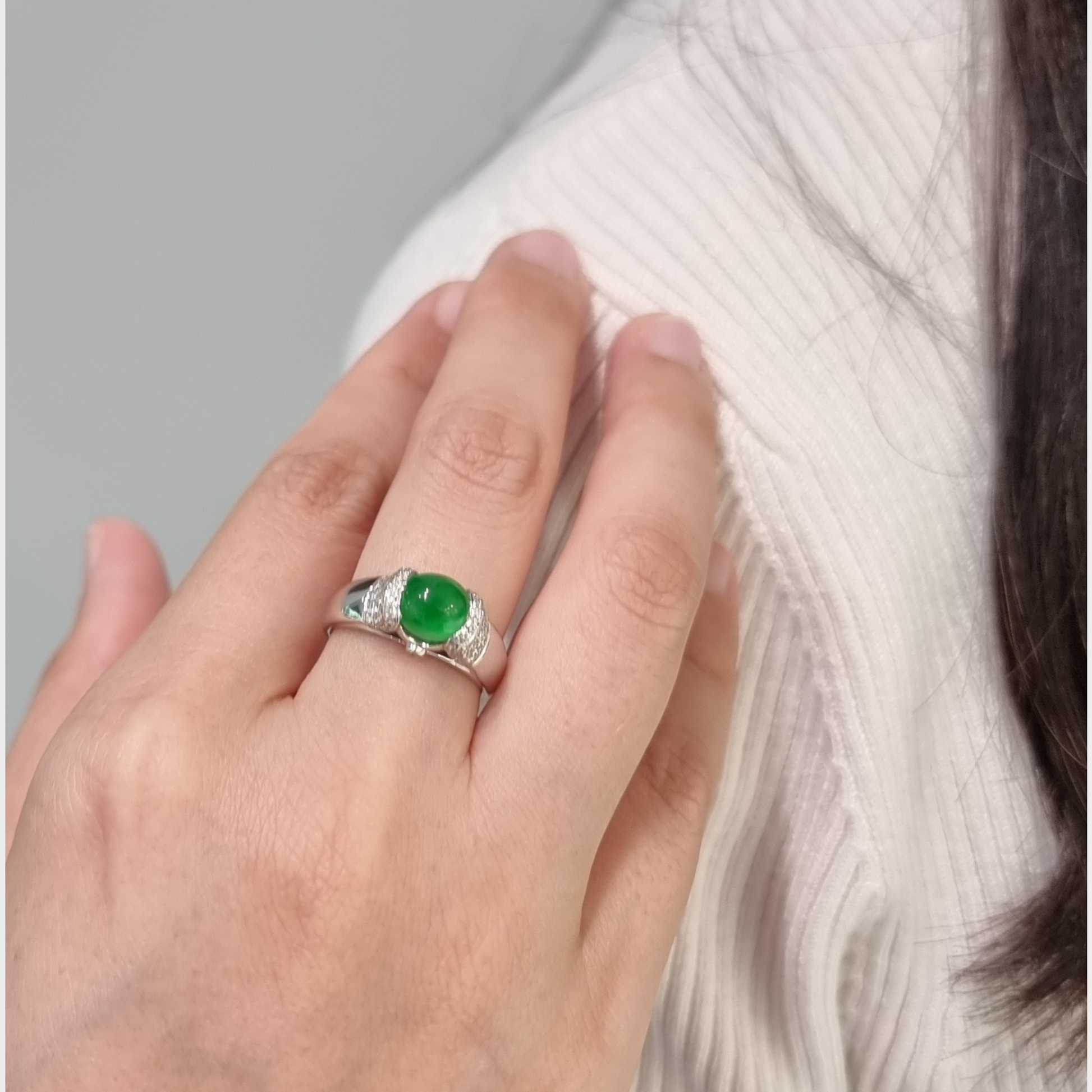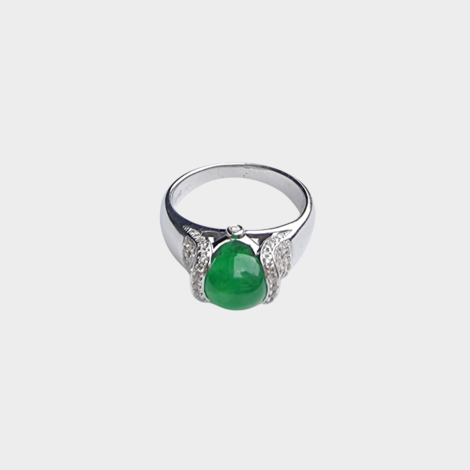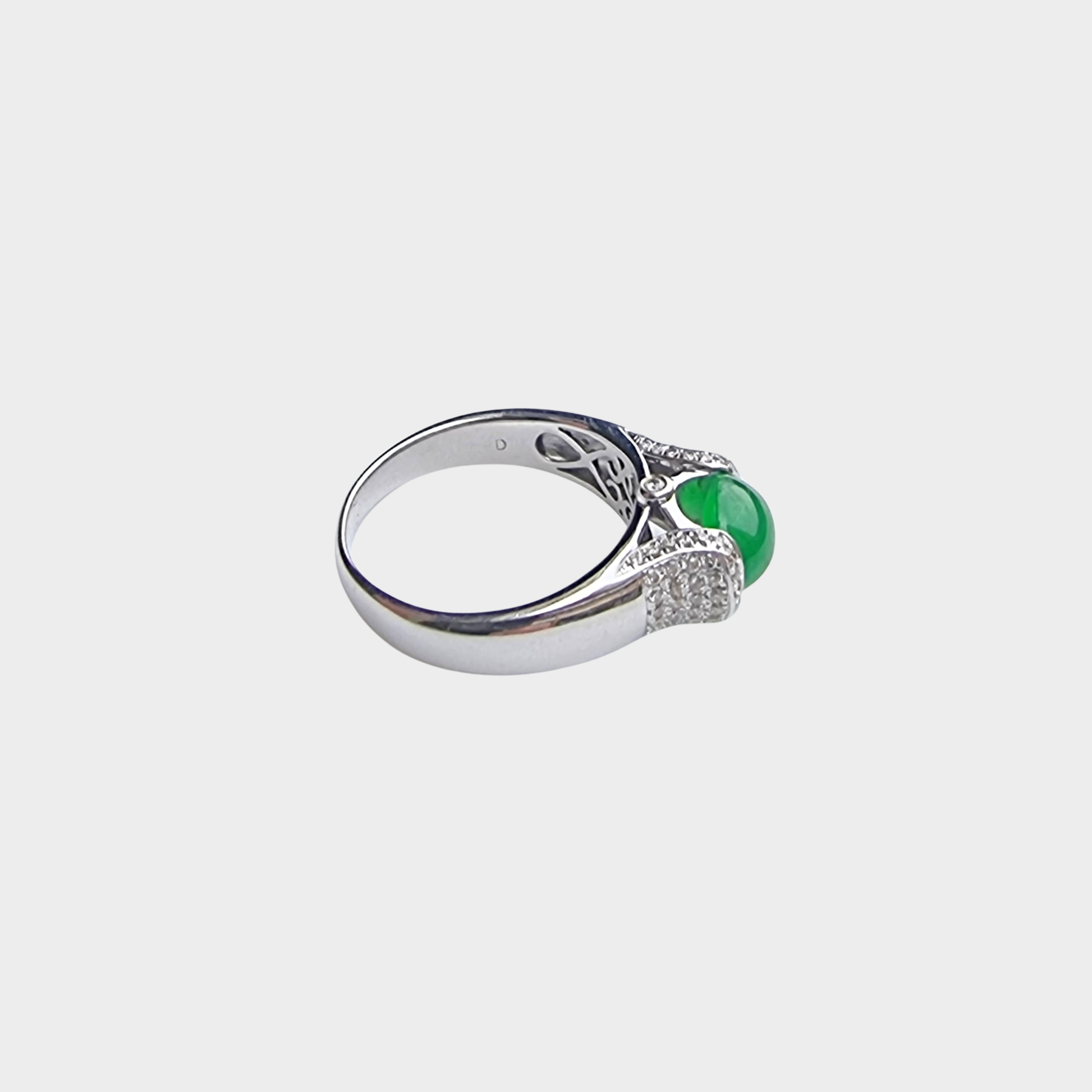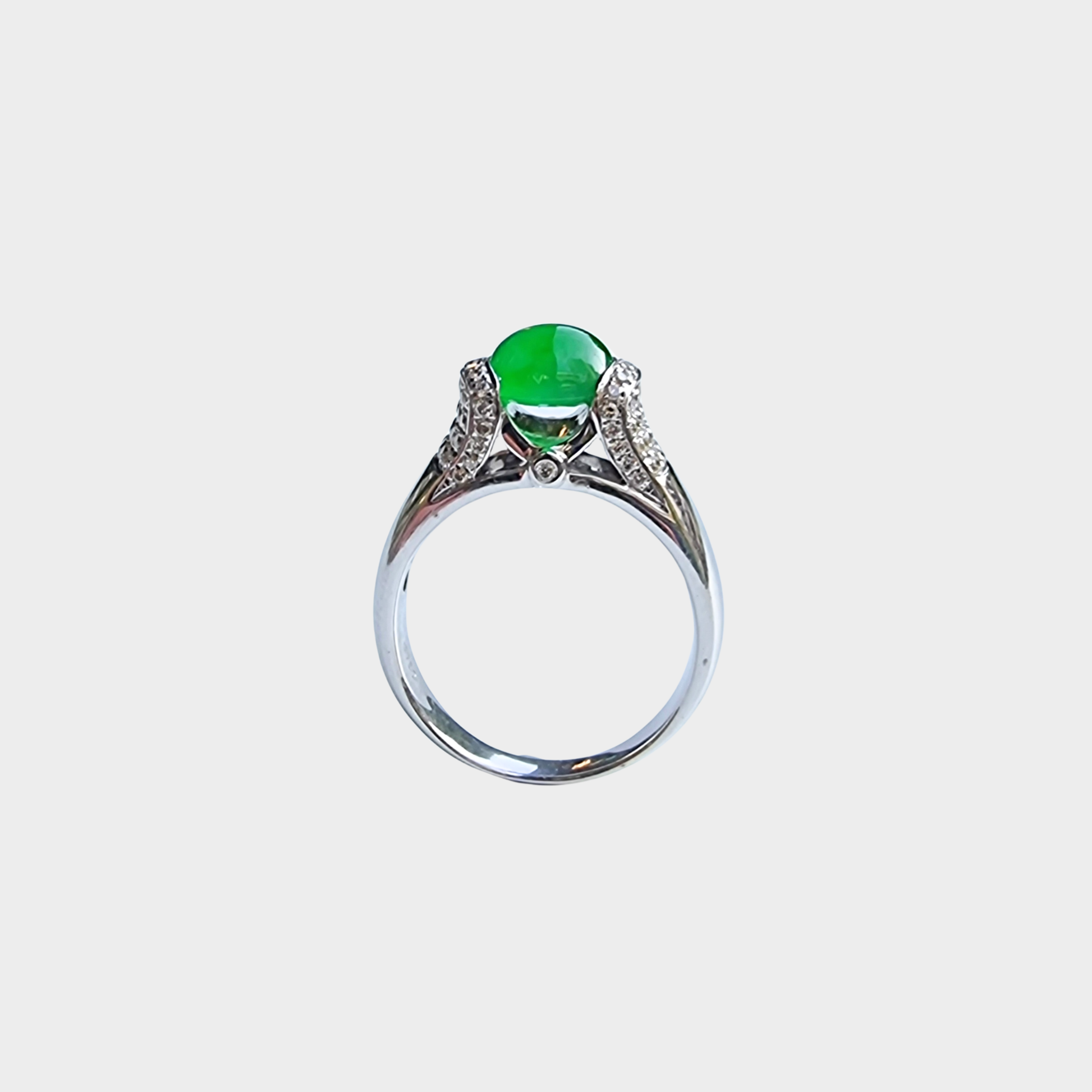 Jadeite Jade Cabochon Ring in White Gold with Diamonds