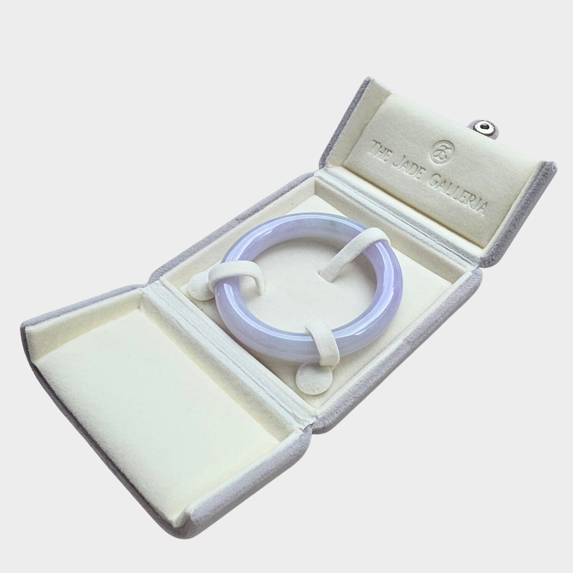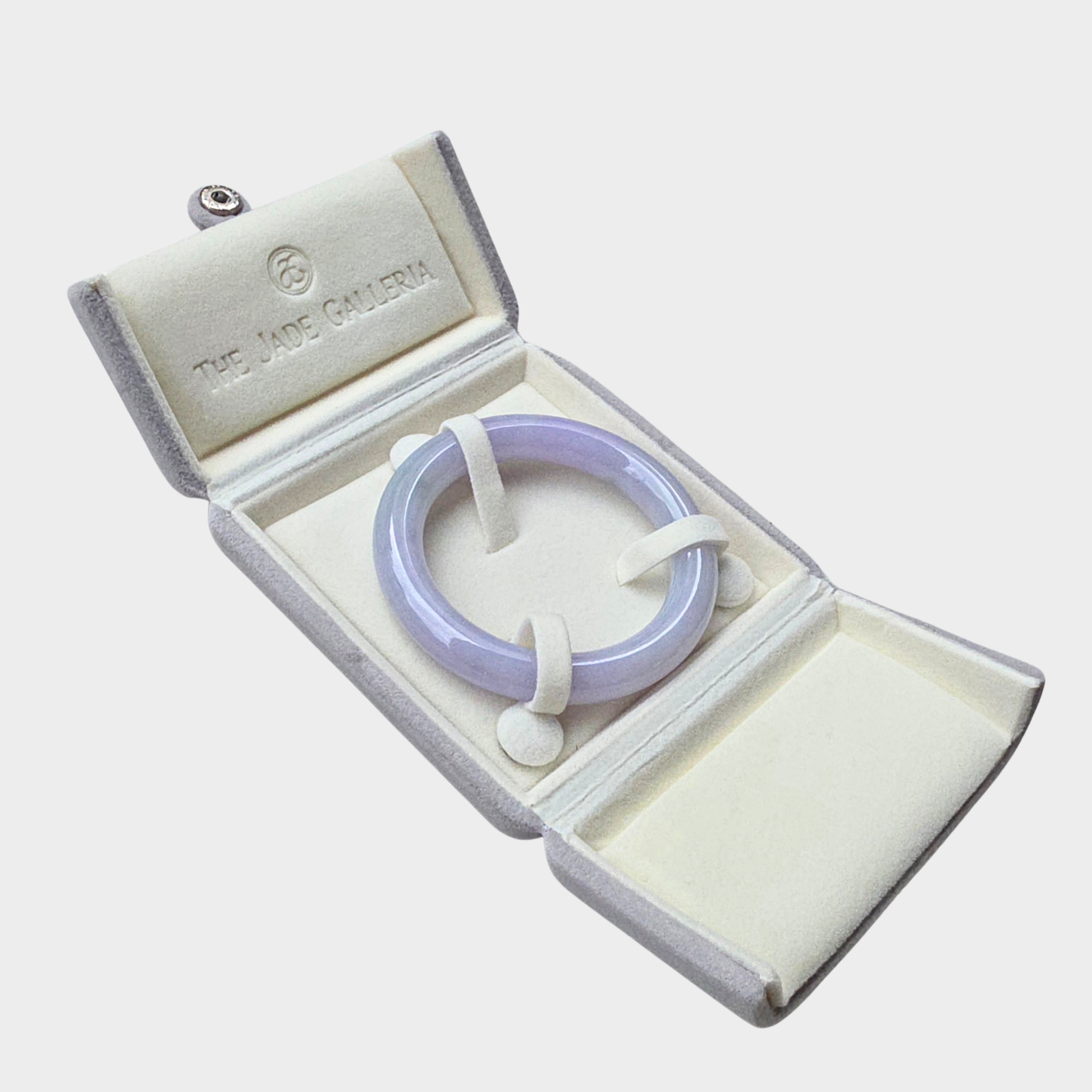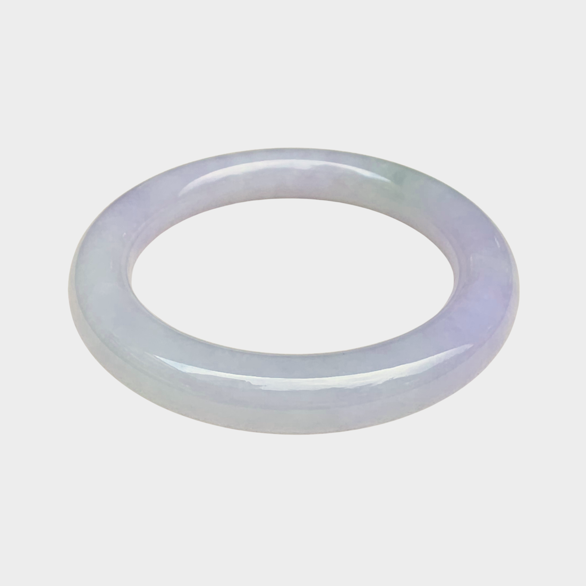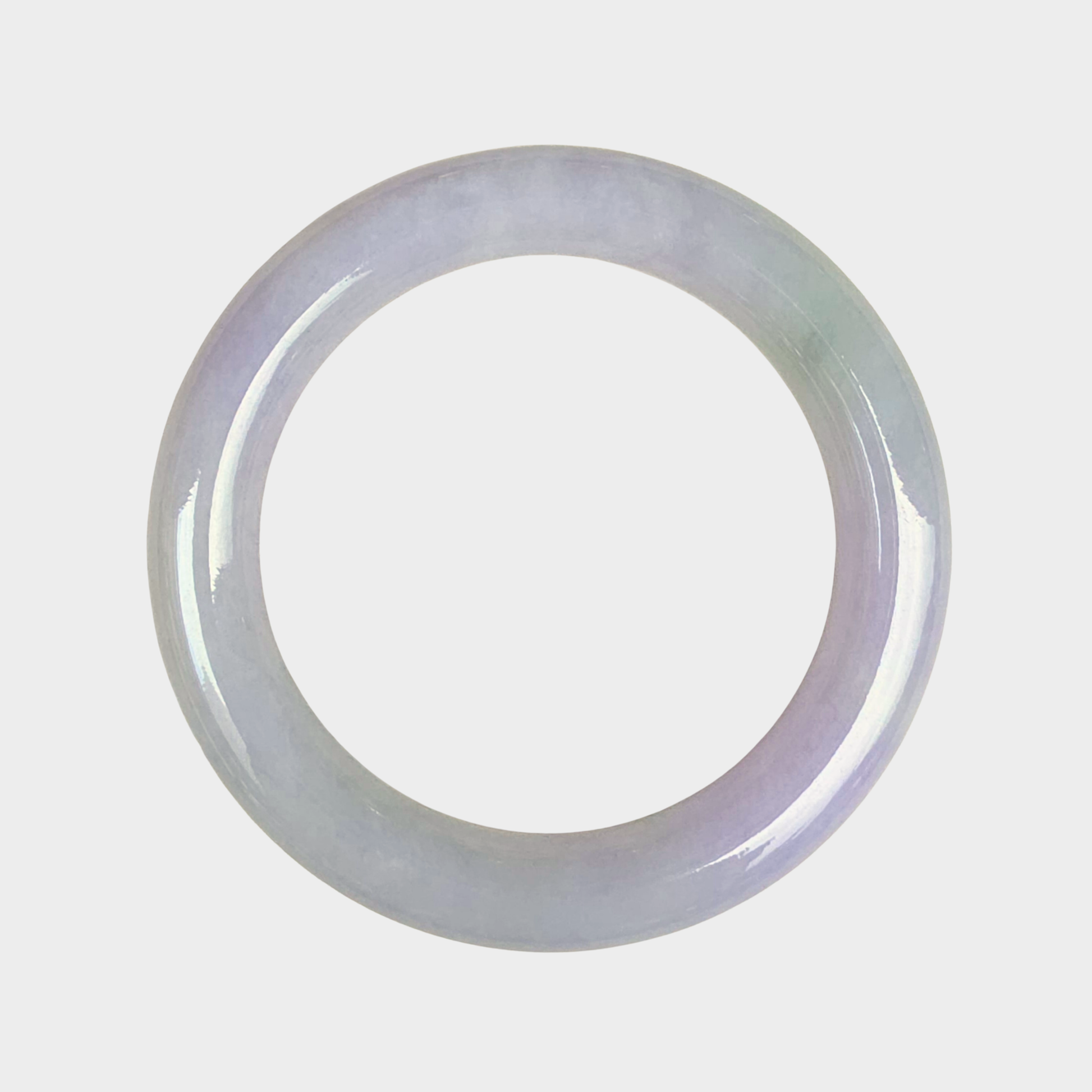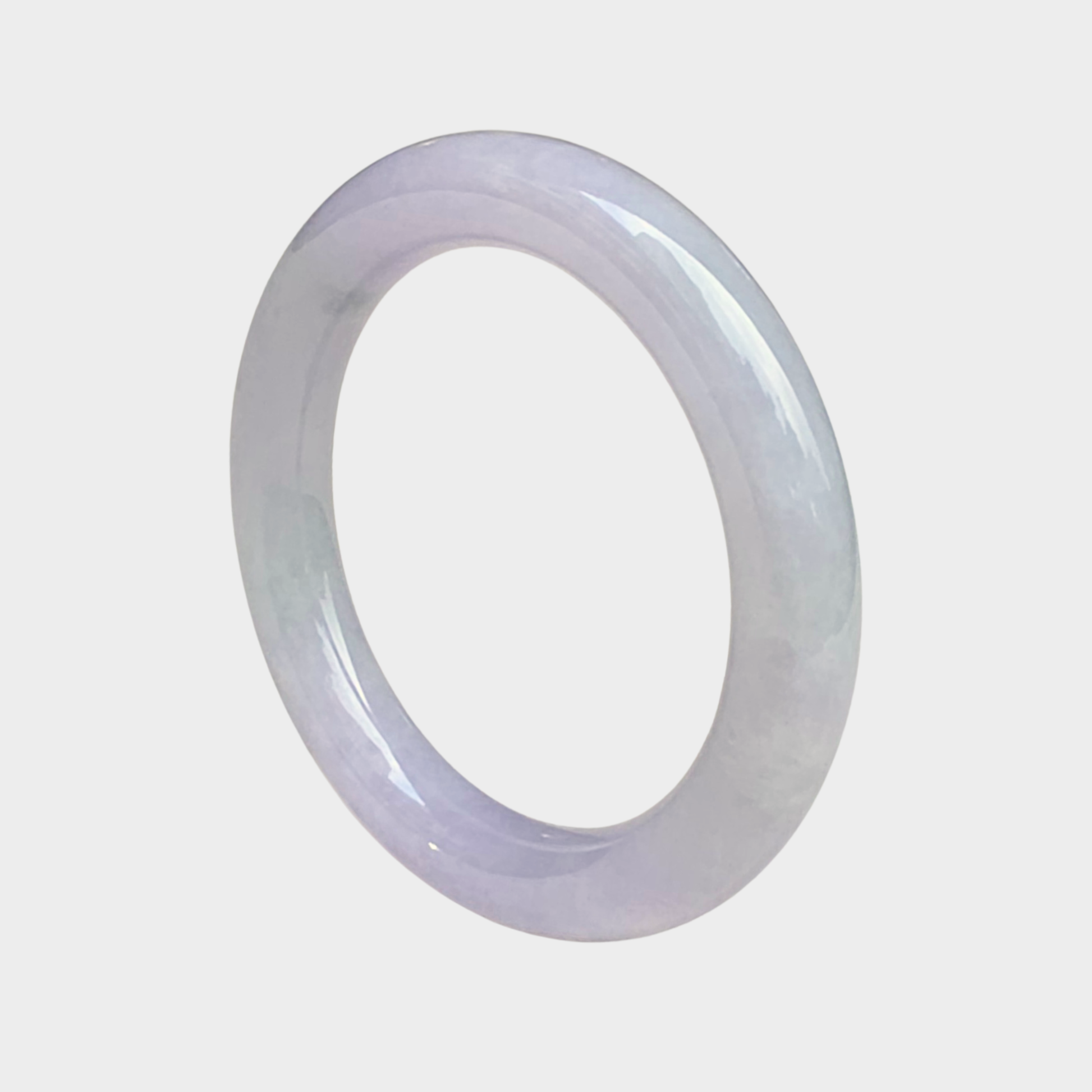 A highly translucent lavender jade bangle. The bangle has a homogeneous vivid purple hue all round.
