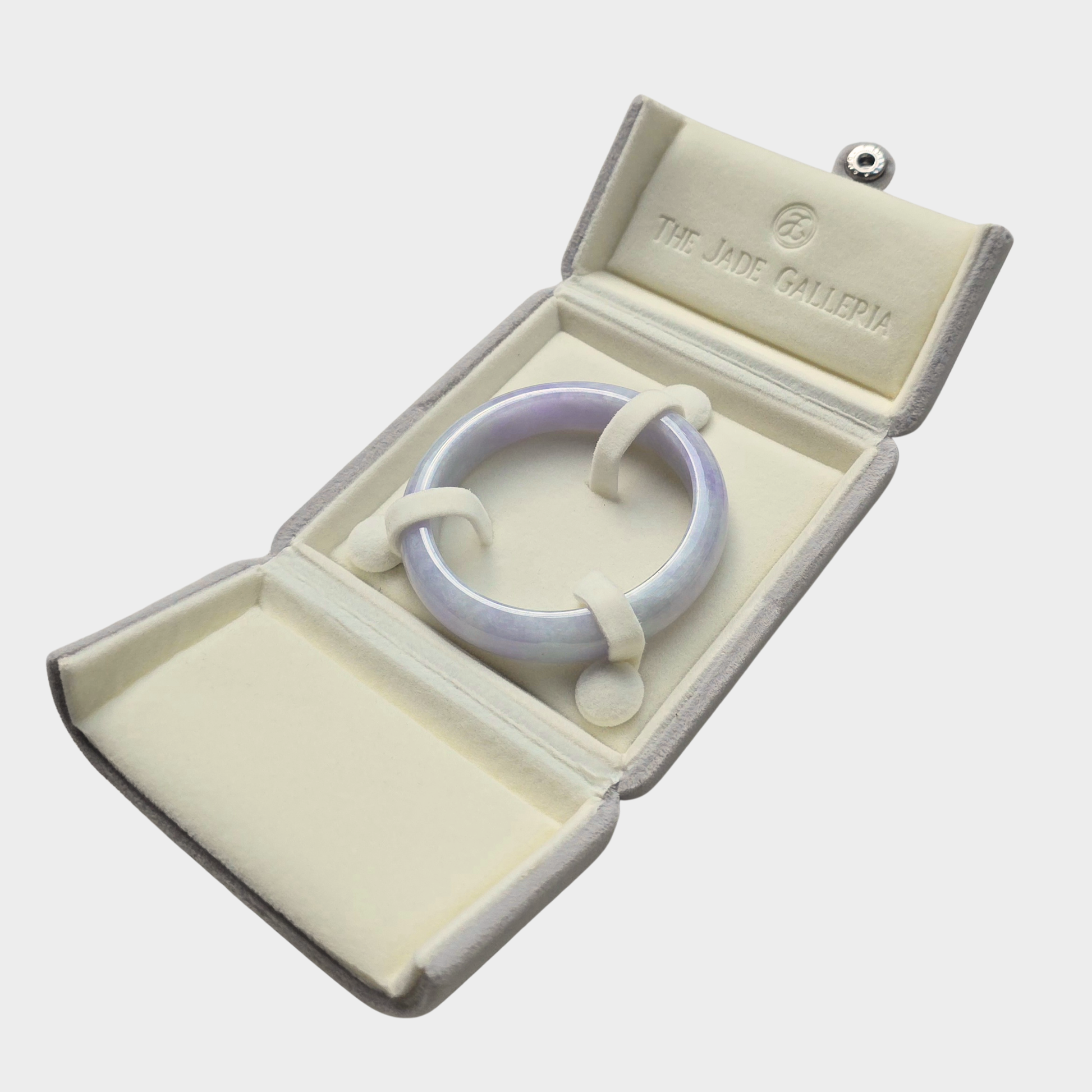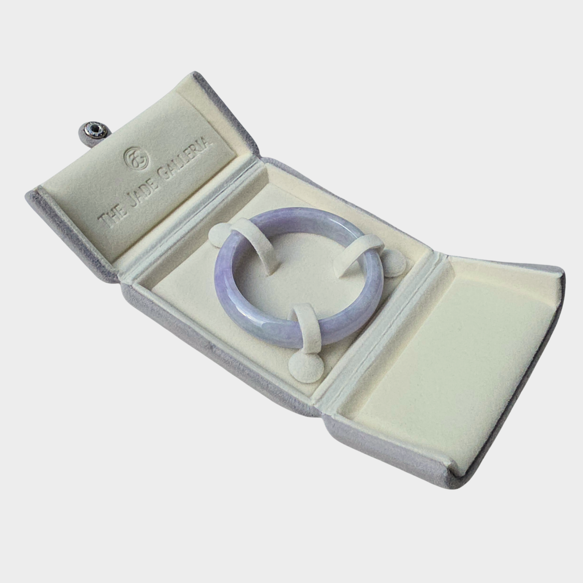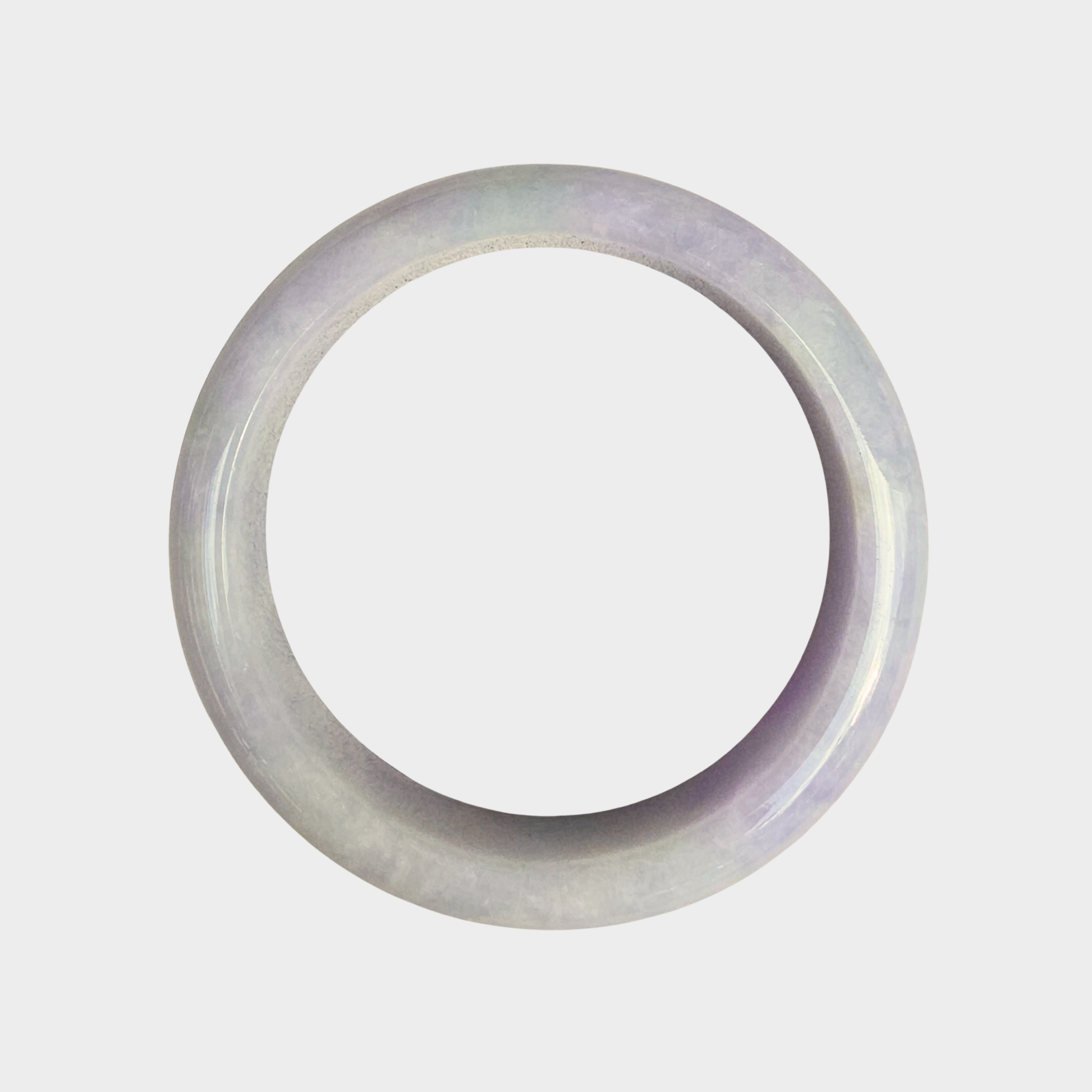 A translucent lavender jadeite jade bangle in a captivating translucent lavender hue, distinguished by its saturated purple coloration that encircles the entire piece. -Purple Passion!