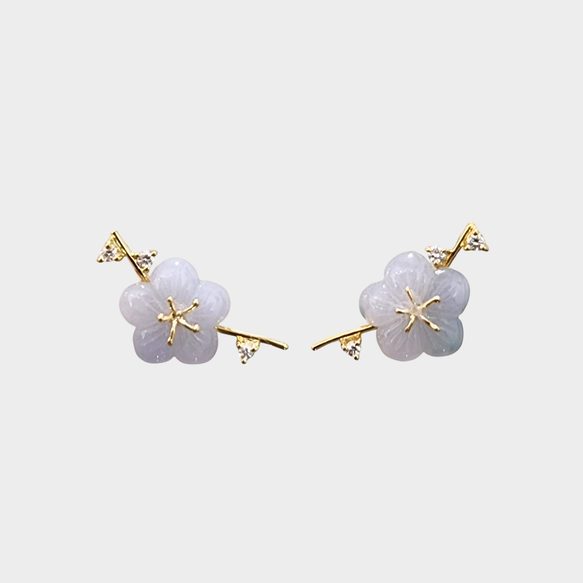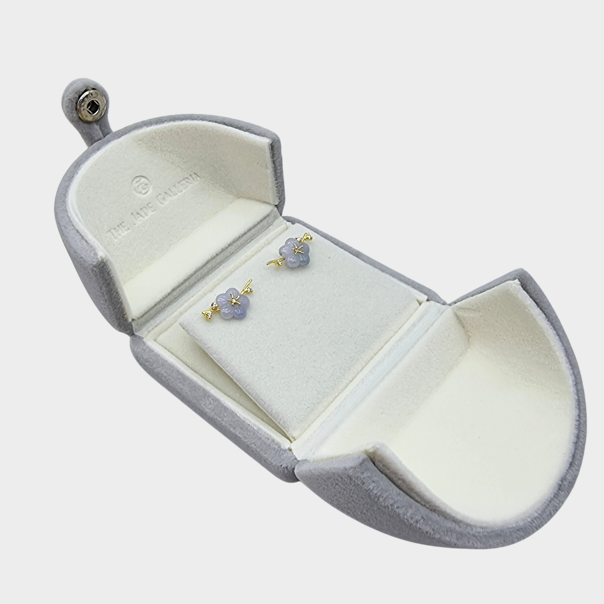 A pair of highly translucent lavender Jade earrings set in yellow gold and diamonds to create a sparkling touch. -Blooming Flowers!
