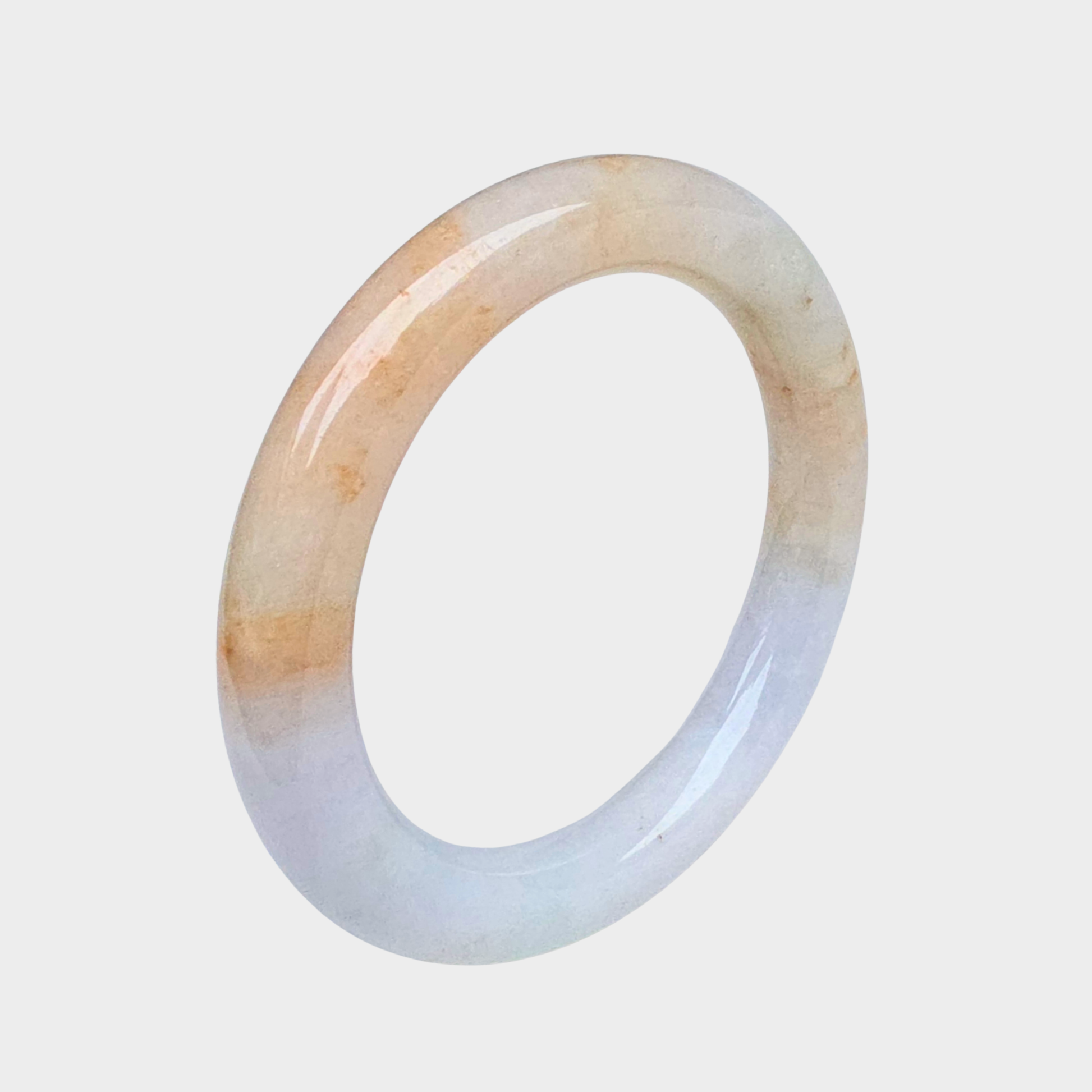 Orange and White Jadeite Jade Bangle - 58mm Round